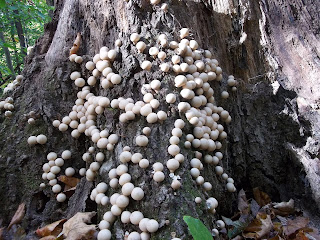 I believe these are pear puffballs but I'm not an expert. They are edible but I did not pick them because I think we humans are crowding mother nature enough.
